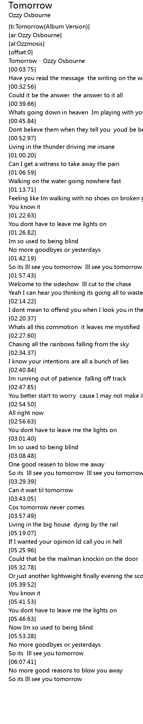 [00:01.57] Tomorrow - Ozzy Osbourne