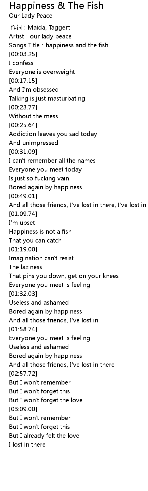 | [01:15.67] | Happiness is not a fish |
