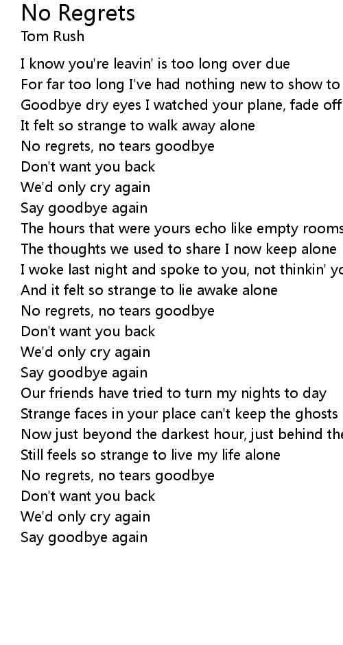 Goodbye dry eyes I watched your plane, fade off west of the moon |