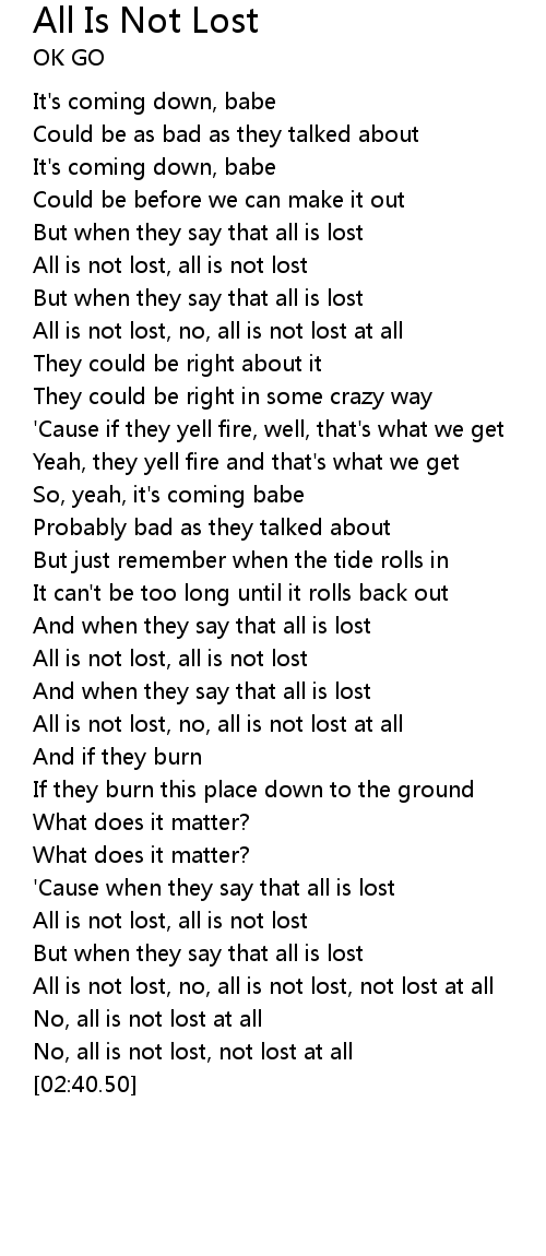 All is not lost, all is not lost |
