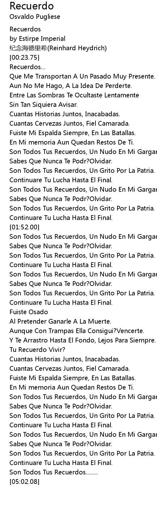 | [02:52.00] | Son Todos Tus Recuerdos, Un Grito Por La Patria. |