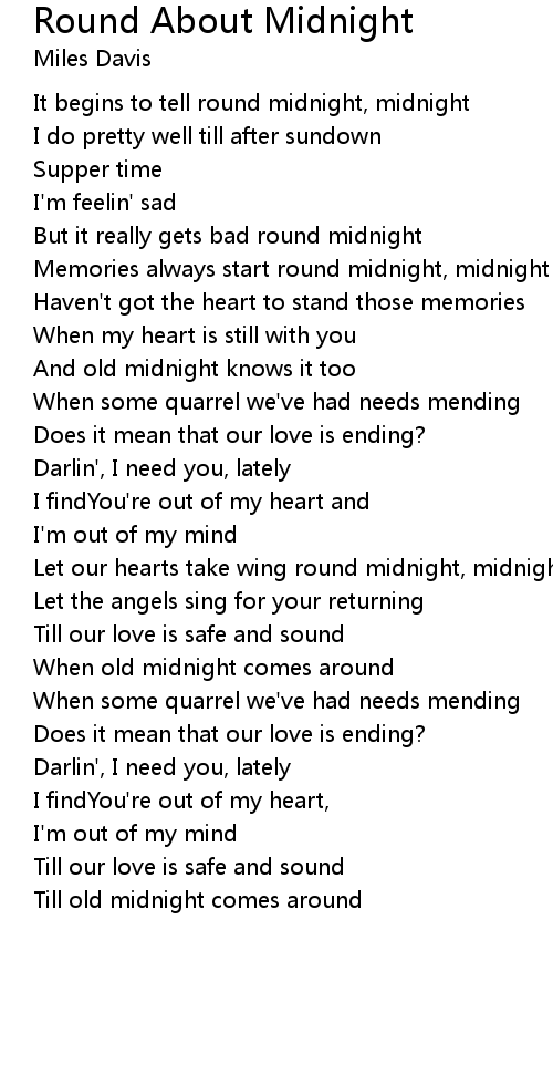 It begins to tell round midnight, midnight |