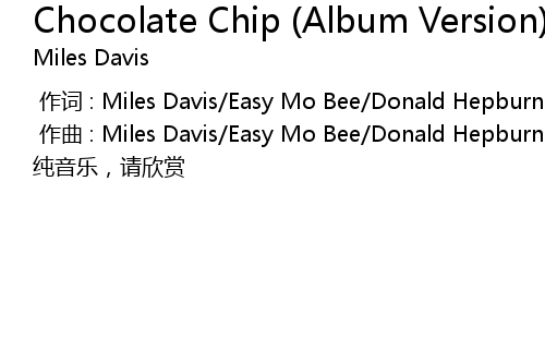 | [00:01.000] | zuo qu : Miles Davis Easy Mo Bee Donald Hepburn |