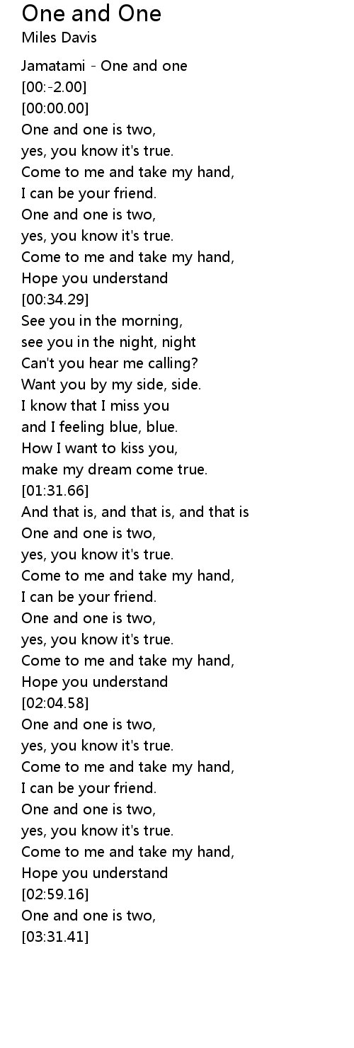 [01:37.07] One and one is two,