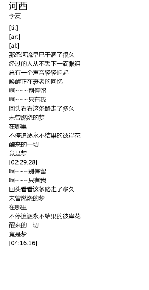| [00:42.25] | 那条河流早已干涸了很久 |