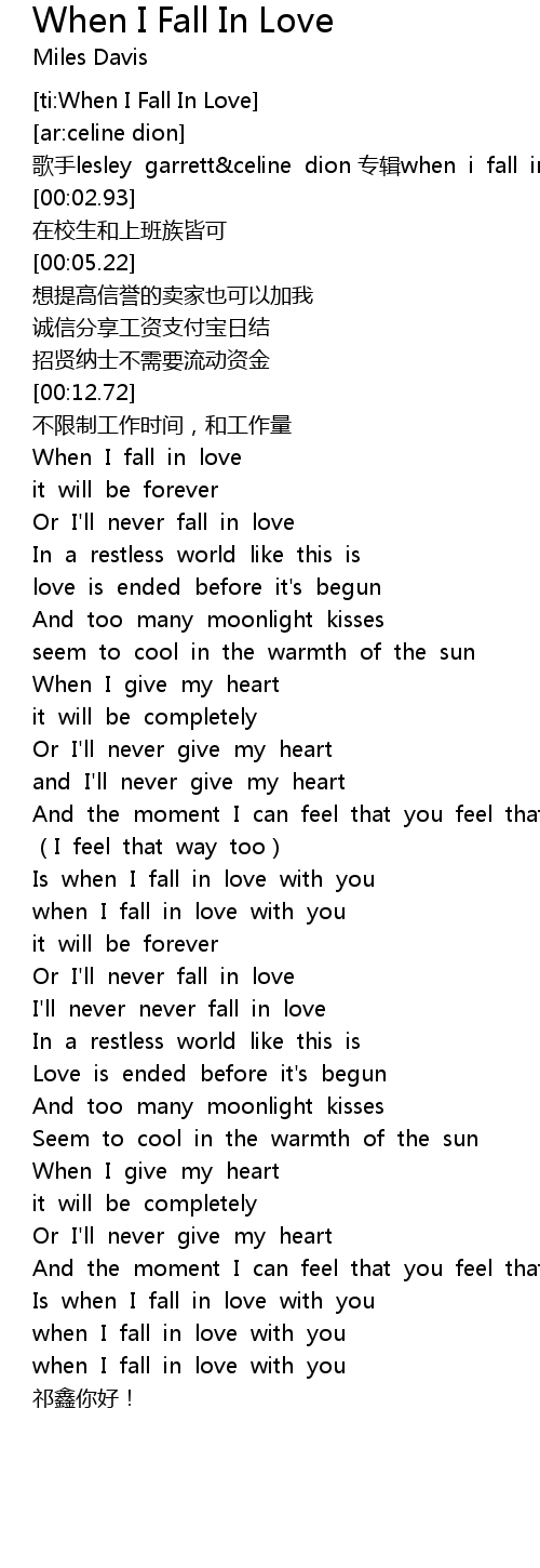 | [00:02.21] | 歌手lesley garrett&celine dion 专辑when i fall in love |