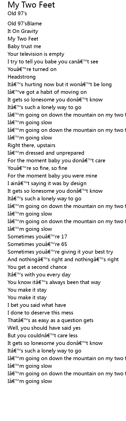 | I’m going on down the mountain on my two feet and | |