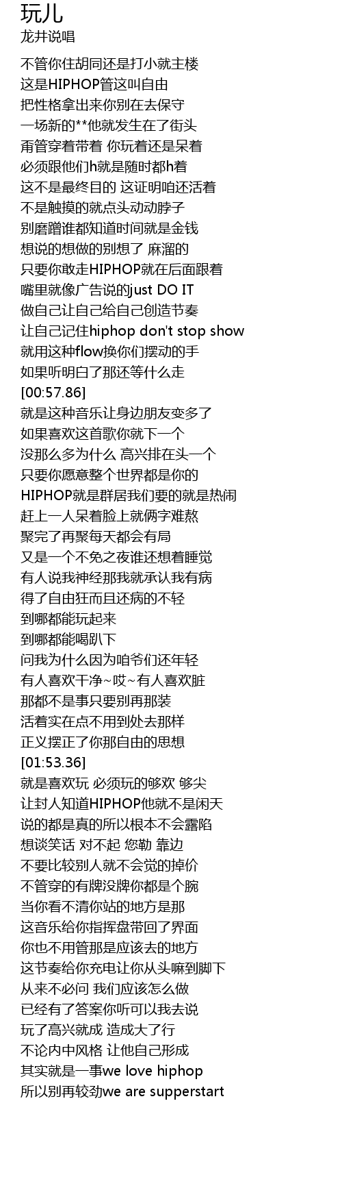 | [00:50.70] | 让自己记住hiphop don't stop show |