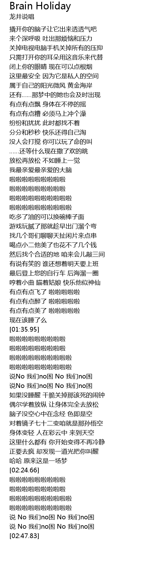 | [02:36.58] | 说 No 我们no困 No 我们no困 |