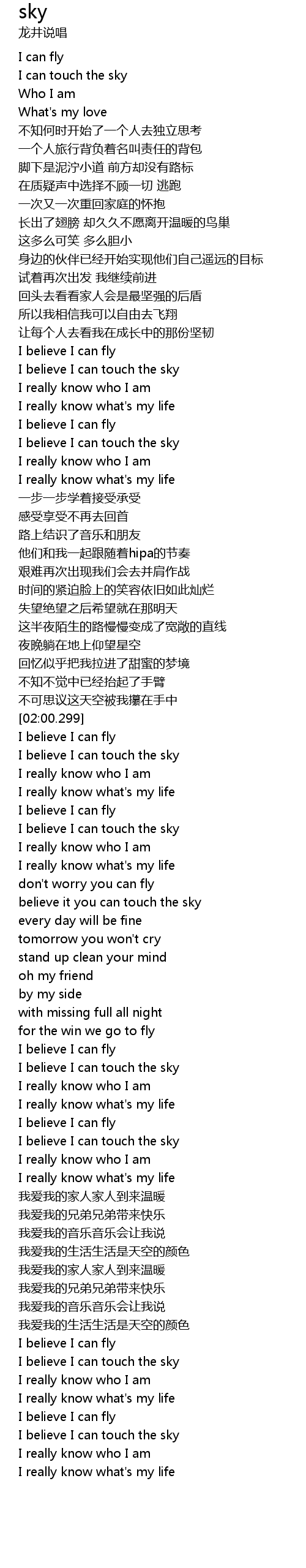 | [03:23.299] | 我爱我的生活生活是天空的颜色 |
