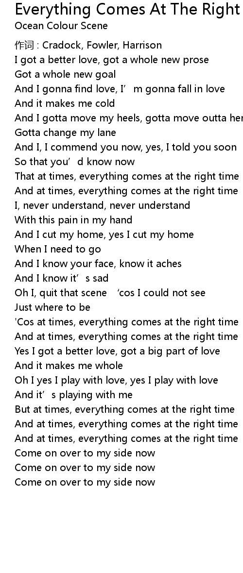 | 歌曲 | Everything Comes At The Right Time |
