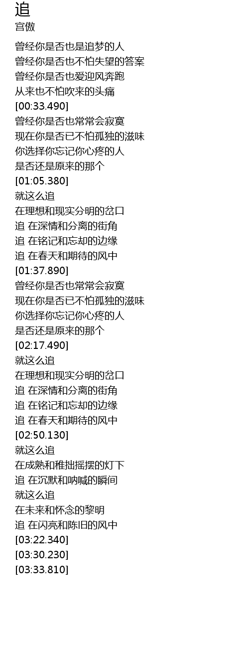 | [00:04.940] | 曾经你是否也是追梦的人 |
