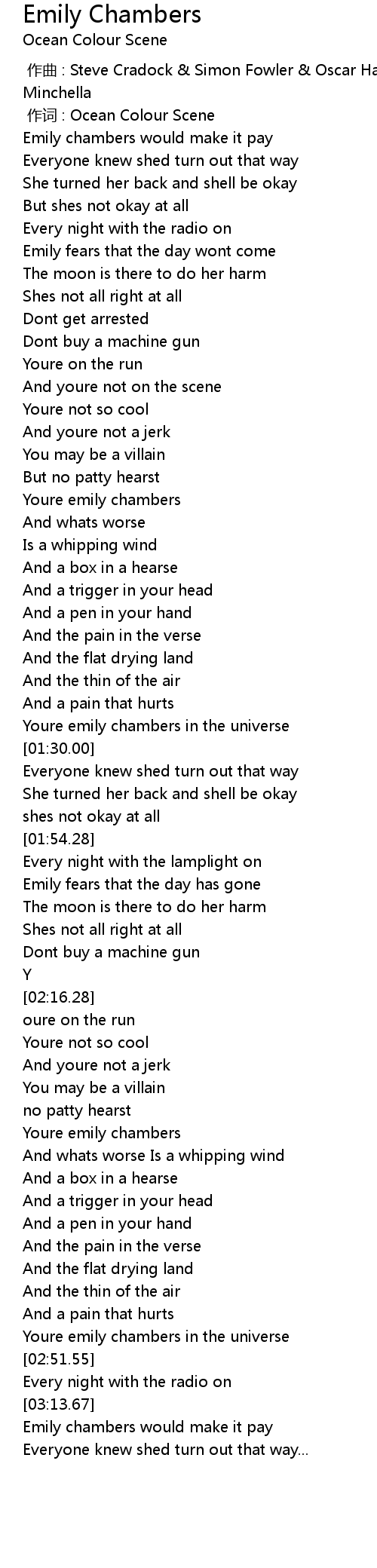 | [00:01.00] | zuò cí : Ocean Colour Scene |