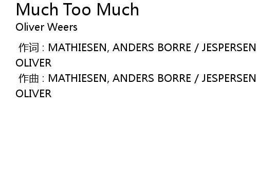 | [00:00.000] | 作词 : MATHIESEN, ANDERS BORRE / JESPERSEN, ANDERS BO / WEERS, OLIVER |