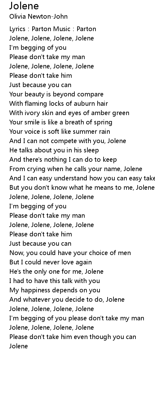 | From crying when he calls your name, Jolene | |