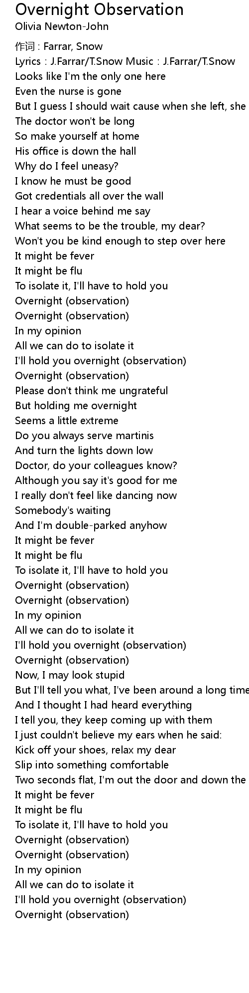 | 歌曲 | Overnight Observation |
