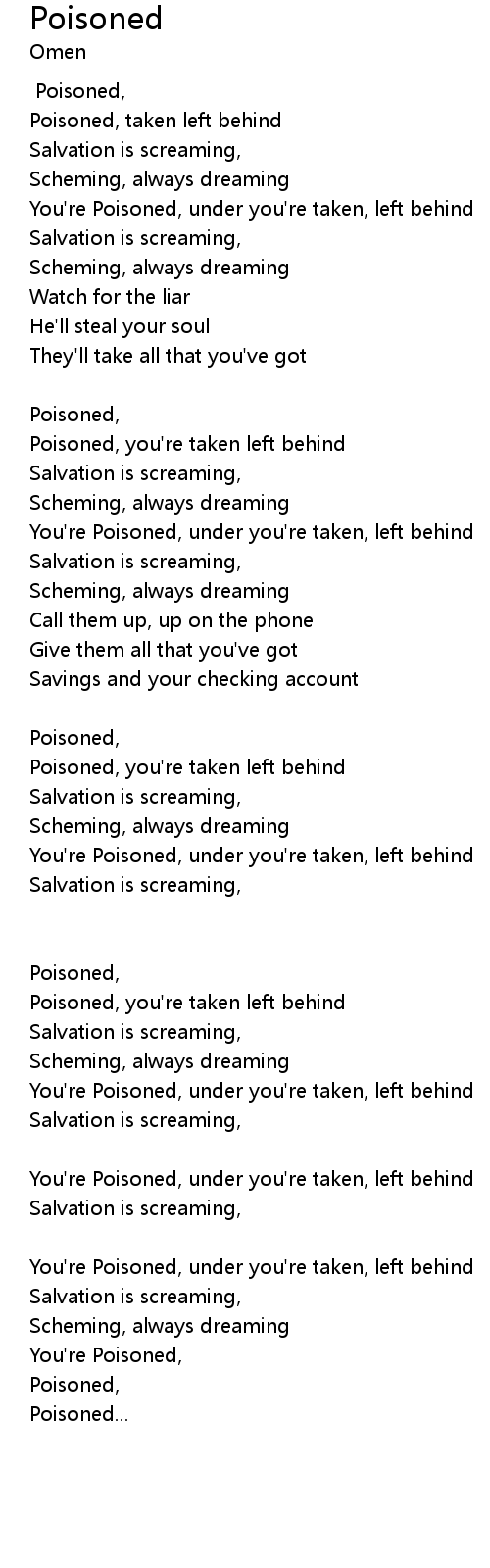 Poisoned, you're taken left behind |