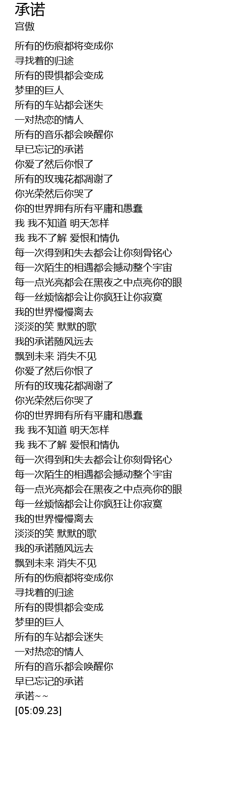 | [04:58.79] | zǎo yǐ wàng jì de chéng nuò |