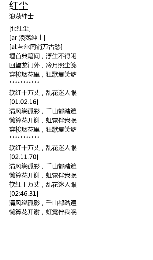 | [02:03.06] | 软红十万丈,乱花迷人眼 |