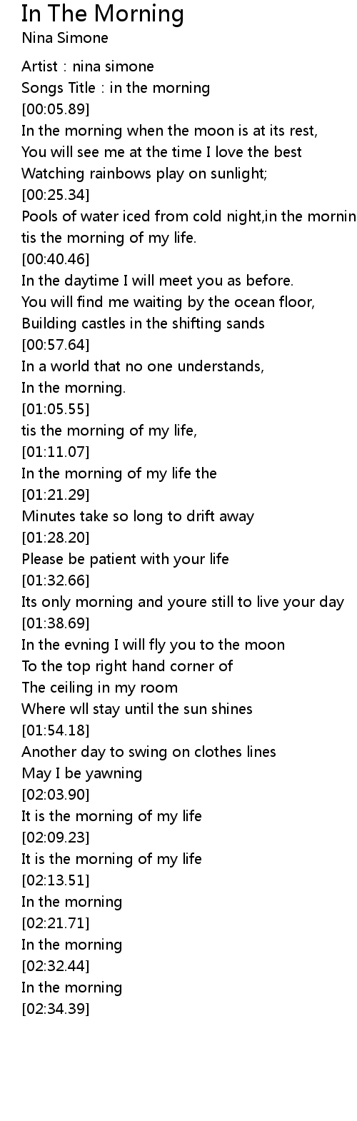 | [00:10.11] | In the morning when the moon is at its rest, |