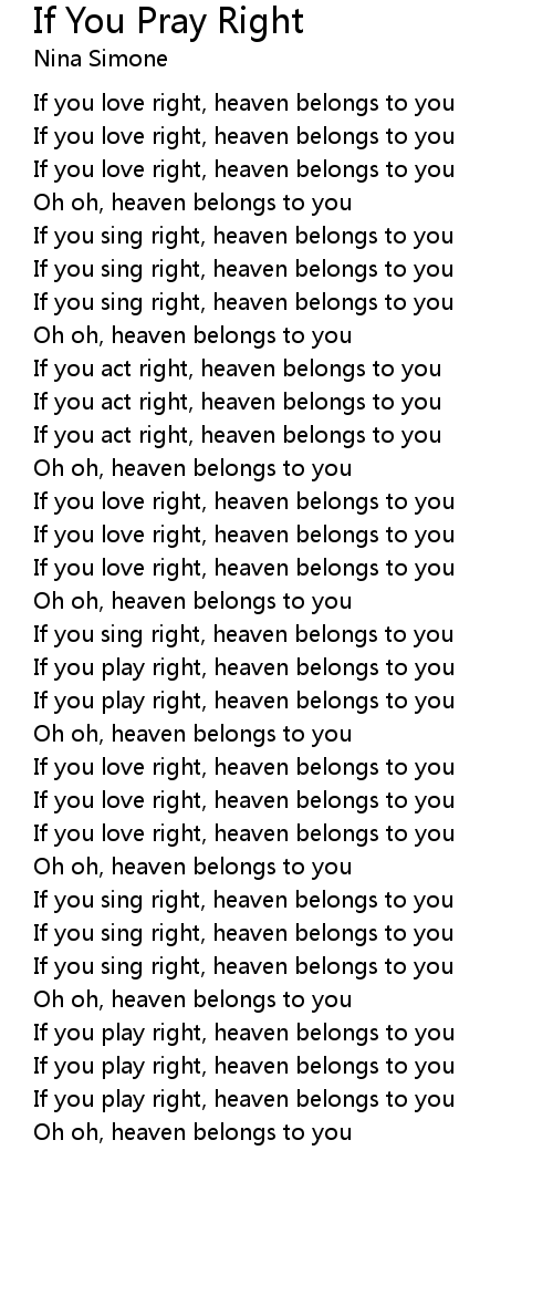 If you act right, heaven belongs to you |
