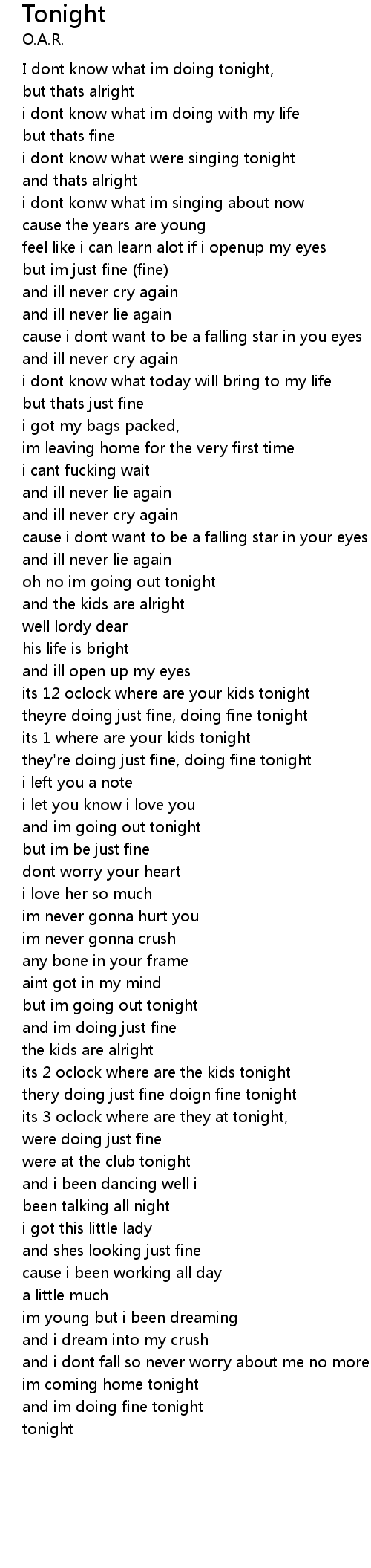 and im doing fine tonight