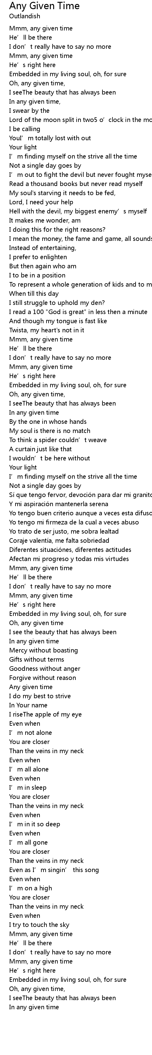 | 歌曲 | Any Given Time |