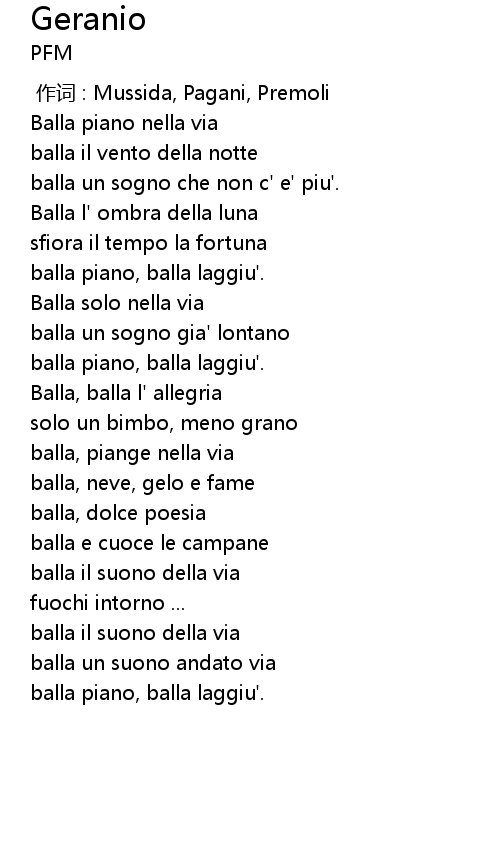 | [00:00.00] | 作词 : Mussida, Pagani, Premoli |