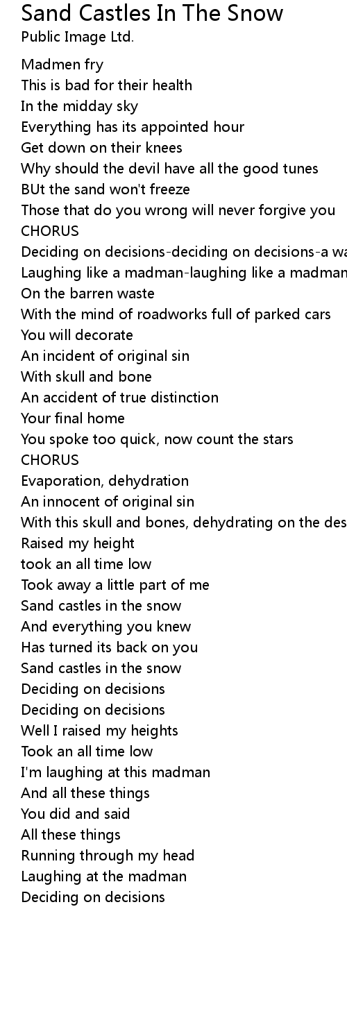 Sand Castles In The Snow 歌词