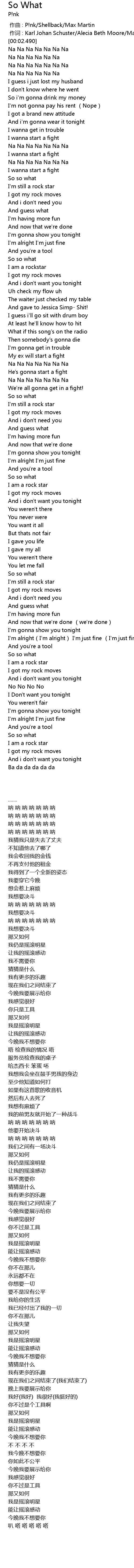 | [00:00.830] | 作词 : Karl Johan Schuster/Alecia Beth Moore/Max Martin |