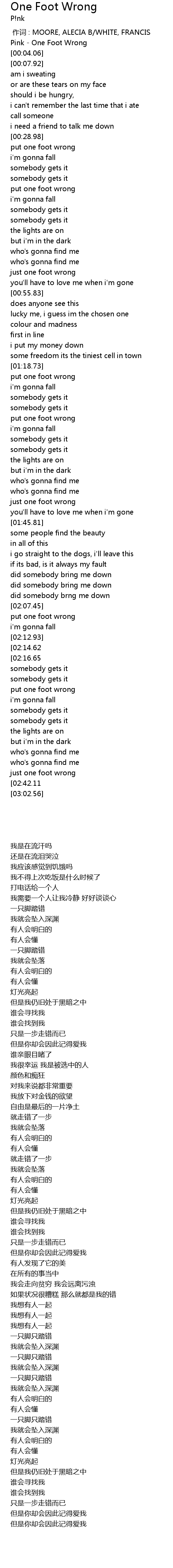 | [00:01.12] | Pink - One Foot Wrong |