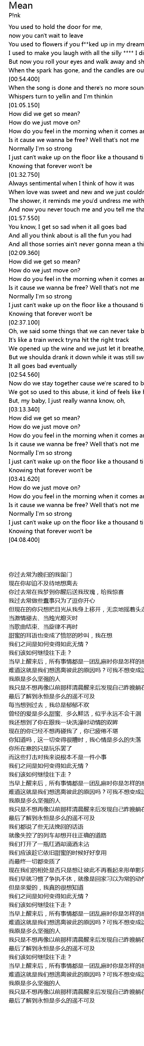 | [03:32.650] | 我只是不想再像以前那样清晨醒来后发现自己昨晚躺在地板哭一整夜 |