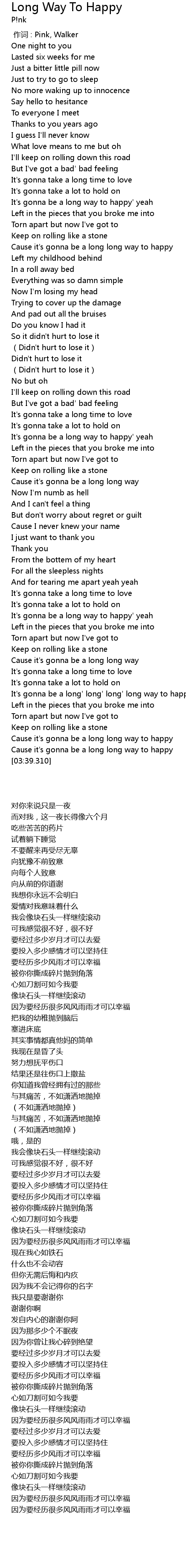 | [02:44.299] | It' s gonna be a long way to happy' yeah |