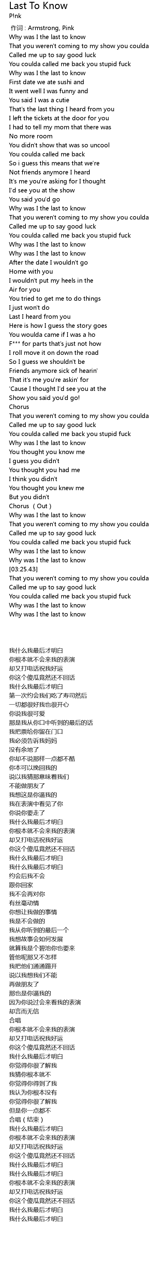 | [03:00.96] | Why was I the last to know |