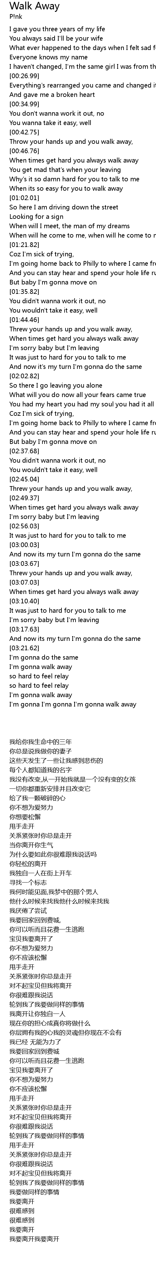 I'm gonna I'm gonna I'm gonna walk away |
