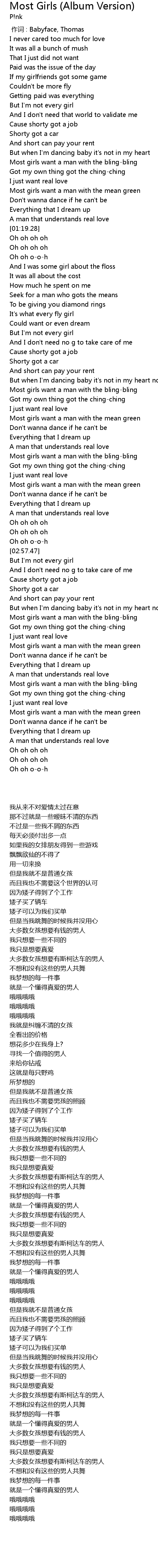 | [03:46.48] | 大多数女孩想要有钱的男人 |