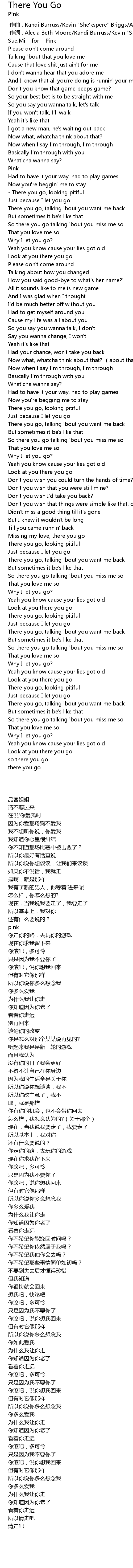 | [00:00.15] | 作词 : Alecia Beth Moore/Kandi Burruss/Kevin "She'kspere" Briggs |