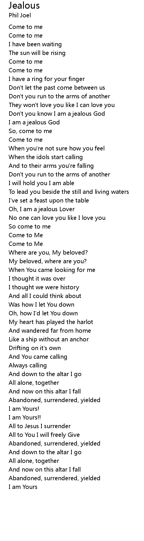 | Don't you know I am a jealous God | |