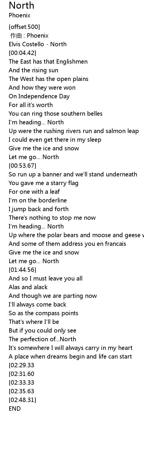 | [02:41.21][02:33.33] | North |