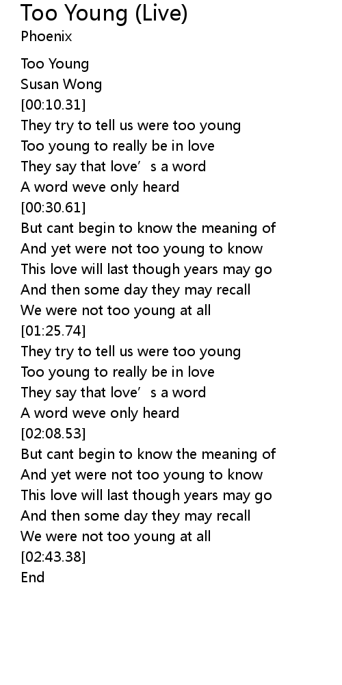 | [00:03.16] | Too Young |