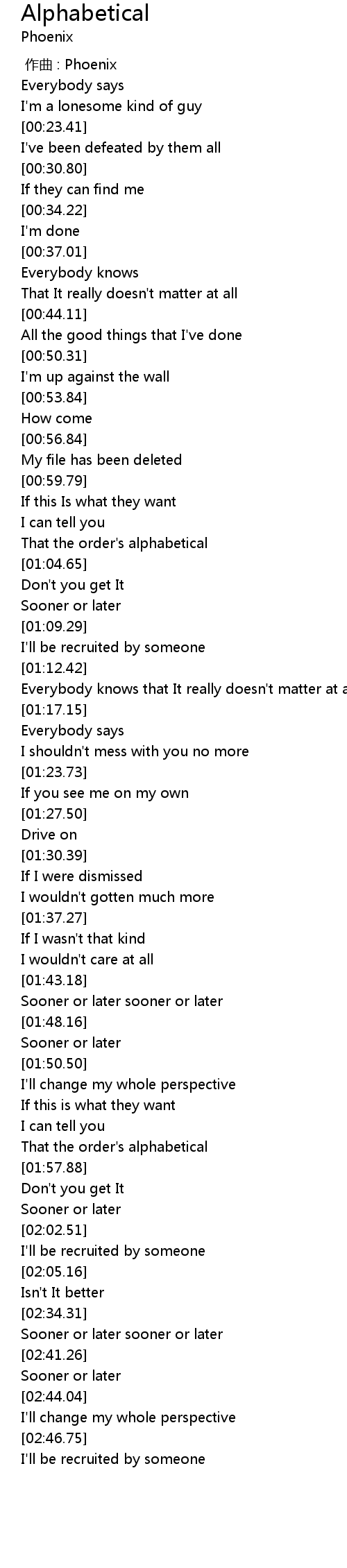 | [01:55.91] | That the order's alphabetical |