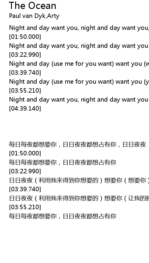 | [03:40.260] | Night and day (use me for you want) want you (you cold my knees) |
