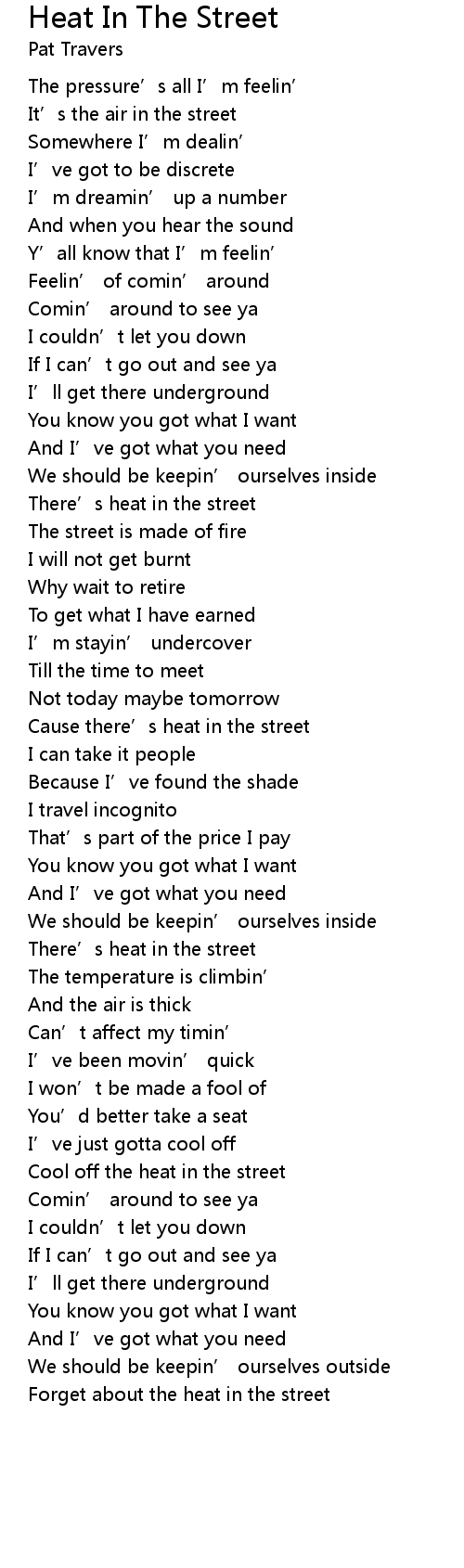 | 歌曲 | Heat In The Street |