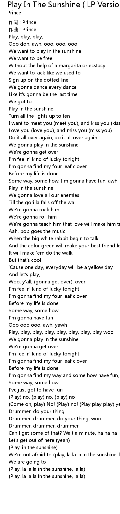 | 歌曲 | Play In The Sunshine ( LP Version ) |