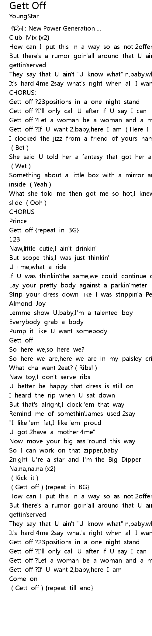 | [00:49.20] | Gett off ? I' ll only call U after if U say I can |
