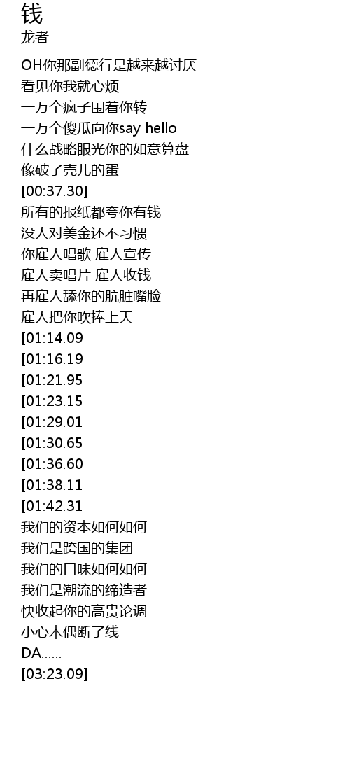 | [01:03.59] | 雇人卖唱片 雇人收钱 |