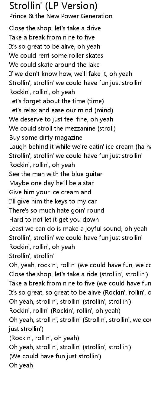 Oh yeah, strollin', strollin' (Strollin', strollin', we could have fun just strollin') |