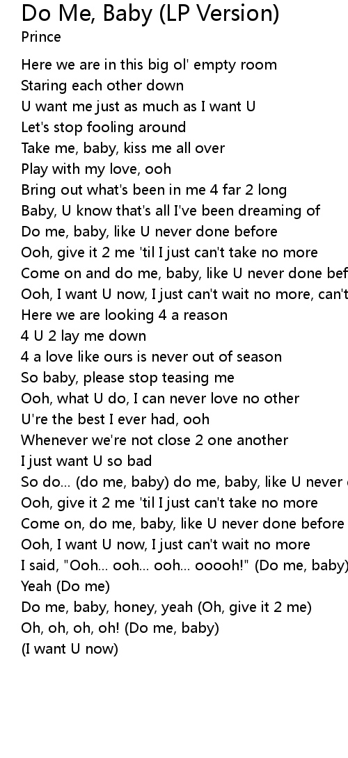 So do... (do me, baby) do me, baby, like U never done before |