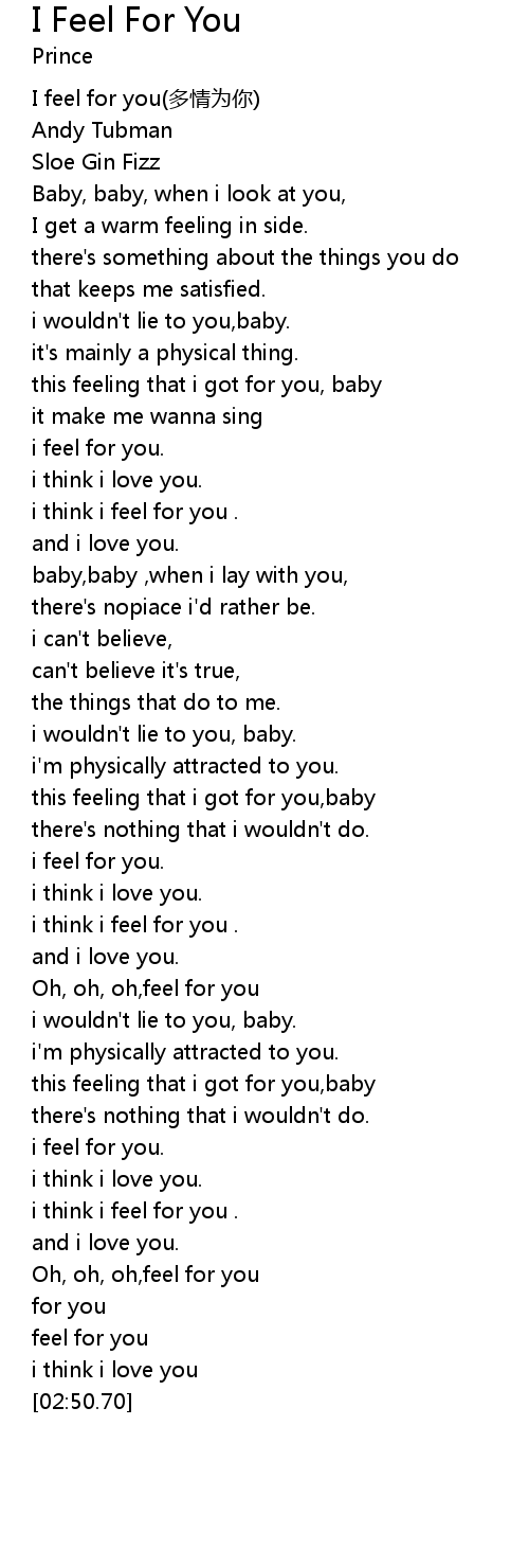 | [02:32.71] | Oh, oh, oh, feel for you |