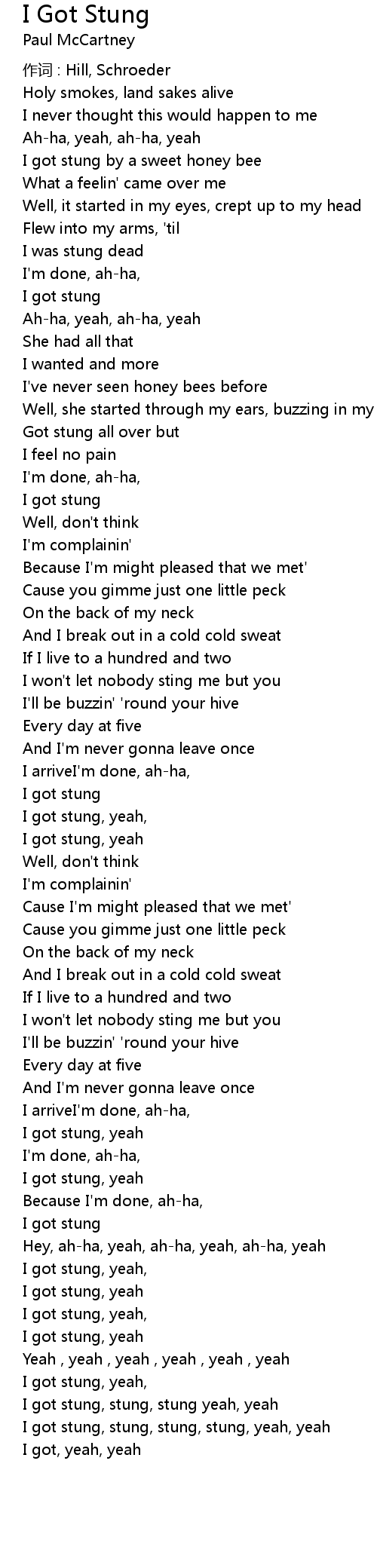 | I got stung, stung, stung, stung, yeah, yeah | |